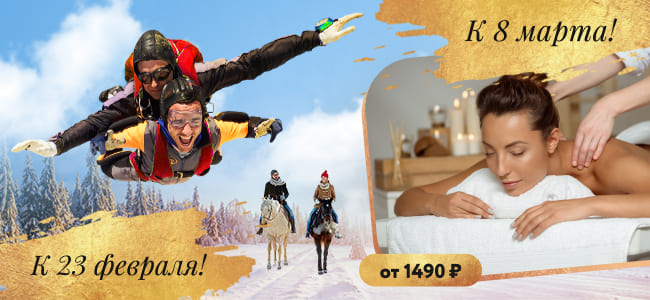 Многие наши подарки расссчитаны не на одного человека, а на двоих, троих или даже компанию друзей. Вне зависимости от возраста и пристрастий получателя среди наших впечатлений непременно найдется желанное!